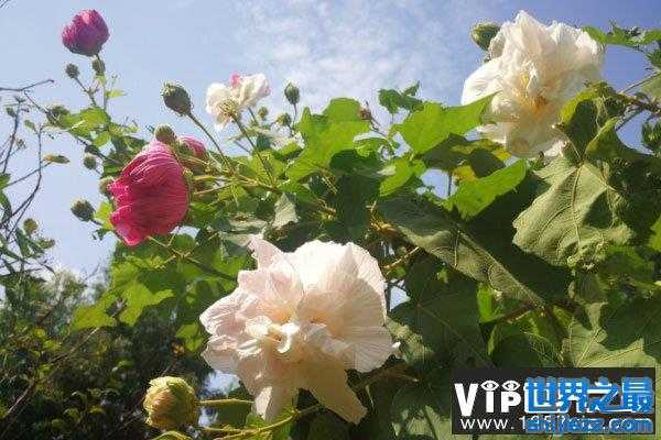 在自然界中,有许多的换色花。例如:金银花,在第一白如银开放,超过12天,如黄金,所以人们叫它金银花。一个樱草,在约室温下20度红弹簧,30度暗室变成白色。花了一些土壤的八仙产生蓝花,粉红色的花朵在其他土壤打开。今天世界之最网小编为大家盘点世界上颜色最多变的花,它就是“弄色木芙蓉”,这种木芙蓉刚开的时候几乎是纯白,之后则会随着外部条件的变化,而逐渐更换至少4种颜色。让我们一起往下看吧!