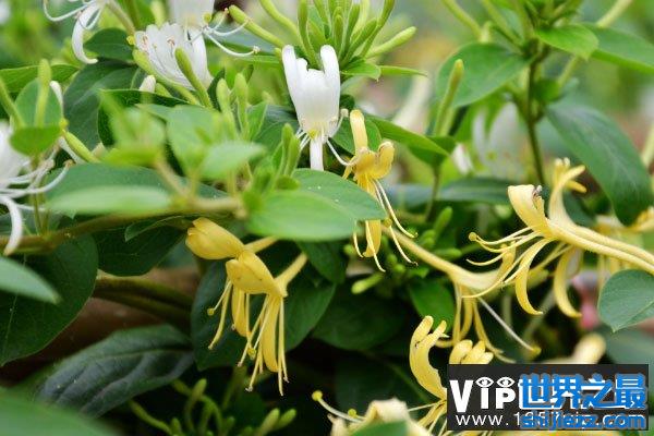 1、金银花:金银花作为十大排毒养颜花茶之一,相信大家都很熟悉,它在最开始还是花苞的时候,大多呈现纯白,和木芙蓉一样,而生长一两天后,它的颜色就会更加接近淡黄,而成熟时则是闪亮的金黄色。