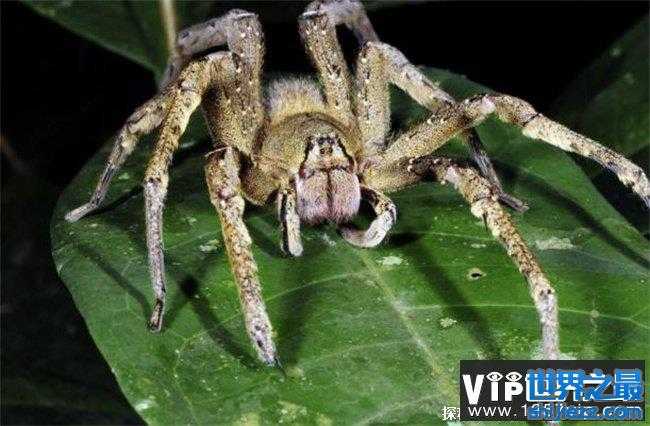 巴西漫游蜘蛛,主要分布在南美洲,巴西等多地是一种大型的蜘蛛,身体当中拥有着剧毒,曾经也有人拿这种蜘蛛做过实验就发现10毫米分泌出来的毒液就可以直接将225只老鼠毒死。如果人们被这种蜘蛛咬伤的话,很快就会出现心律不齐,或者是血压立马升高等多种症状,严重的还会导致人出现失去性命,这是世界当中最致命的蜘蛛之一。