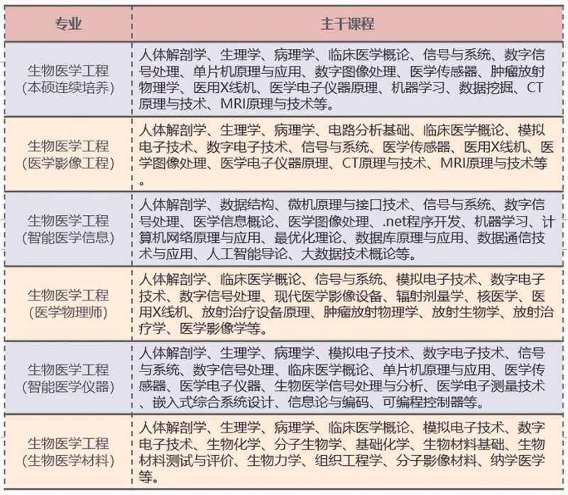 比如生物医学工程全国第一的东南大学,就是电子信息类专业,而国内生物医学工程本科专业方向最多的是南方医科大学(第一军医大学),看主干课程就知道是电子信息类专业。