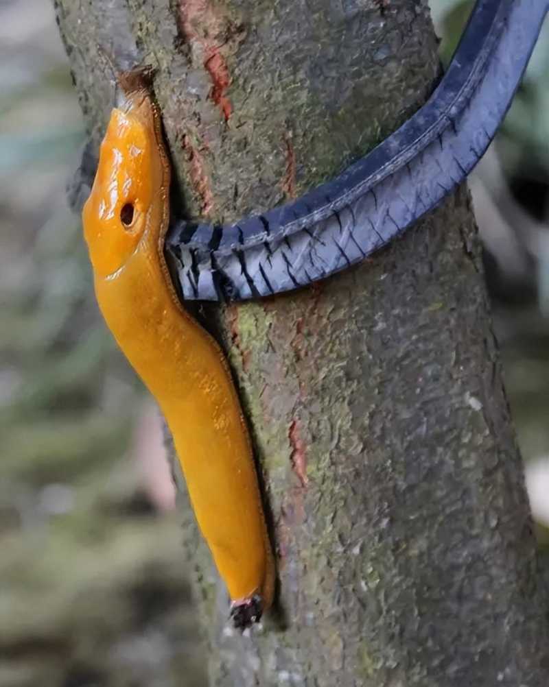 香蕉蛞蝓像其他腹足类动物和软体动物一样,有齿舌,利于平时进食。