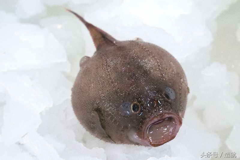 现在来点更加可爱的东西:萌萌的棺材鱼。它的身体膨胀了起来,因为它在保护自己。棺材鱼会利用水,使身体膨胀,好让它更难以被捕食者吞下。很不错的生存策略。但棺材鱼瘪下去的时候,就不那么可爱了(下图)。