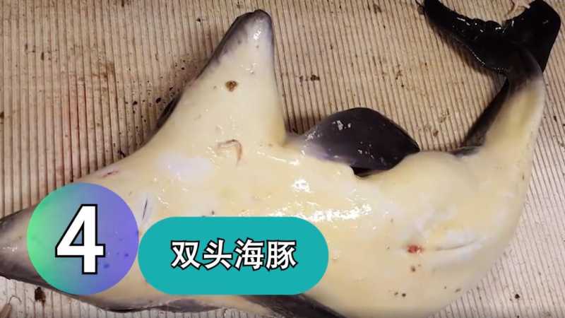 第四名,双头海豚2014年8月,一名体育老师在土耳其西海岸发现了一只被冲上岸的双头海洋生物,他的照片很快便在网上掀起热议。经过鉴定,正是一头罕见的双头海豚,年龄仅一岁左右,身长接近一米,只有一个头上长有成形的眼睛。双头海豚能活着降生的本身就不多见,而这头居然能长这么大,真的算是很幸运了。2017年,荷兰渔民还在北海意外捕获到一只双头海湾属海豚,不过渔民不敢留下它,只是拍了几张照片留作纪念。专家通过照片证实,这是一只雄性,应该在刚出生不久就死了。