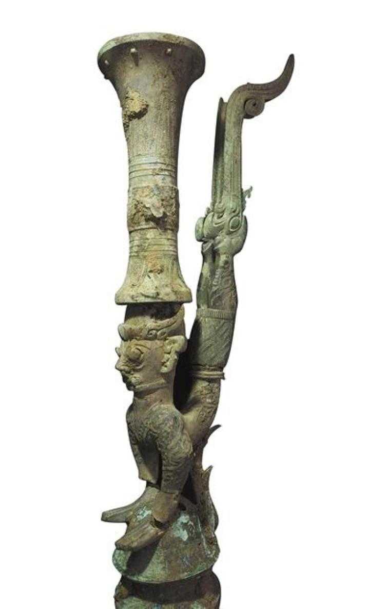 1986年三星堆2号“祭祀坑”出土的一件青铜鸟脚人像,与8号“祭祀坑”最新发现的顶尊蛇身铜人像完美“合璧”。近日,三星堆的一条新闻上了热搜。这一重磅新闻揭示的信息量是巨大的,留给我们的想象空间也是巨大的。