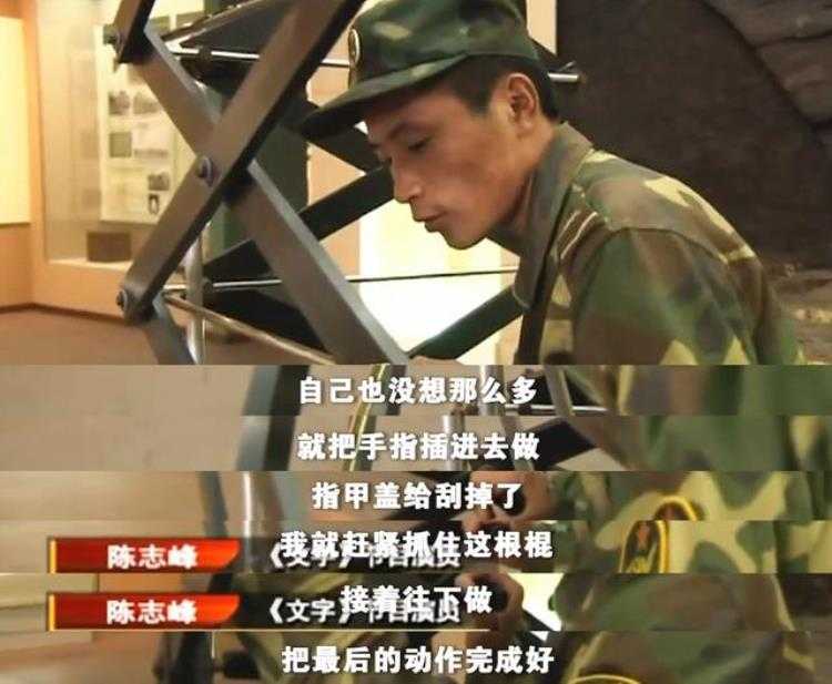 当国人得知是因为螺丝坠落而出现失误,陈志峰战士用自己的小拇指代替螺丝完成后面的动作,下来时手指早已血肉模糊时,无数国人留下了感激与疼惜的泪水。