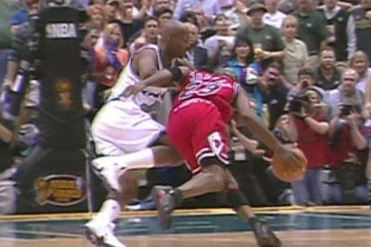 98年乔丹总决赛上的世纪绝杀也被人们热议了起来,而热议的观点依然是那个历史级别的悬案:乔丹绝杀前到底有没有推人?