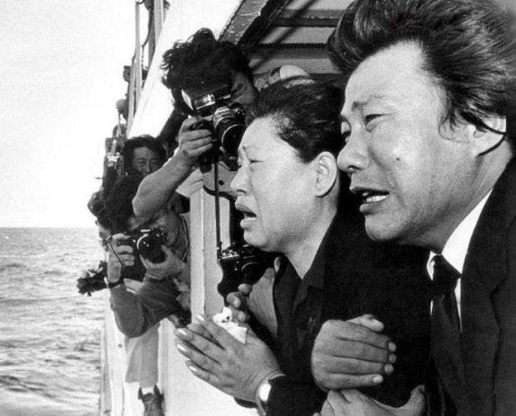 1983年9月6日,失事客机遇难者亲属到事发海域祭奠。