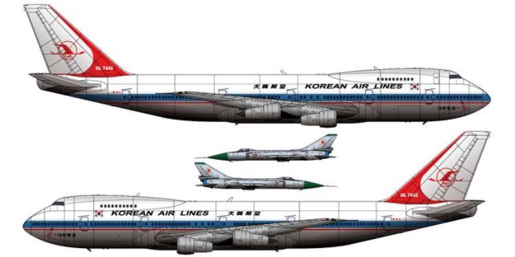 本厂长绘制的大韩航空KAL007航班HL7442号波音747-200客机二视图