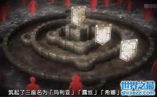 在这里利用剩下的巨人,修建起了三堵高墙。后来长久的时间过去,生活在墙里的人们早已遗忘了过去的历史,只认为,自己从一开始就生存在这里。至于墙外的世界,只有恐慌,慢慢的……整个进击的巨人的故事,就这样开始了。