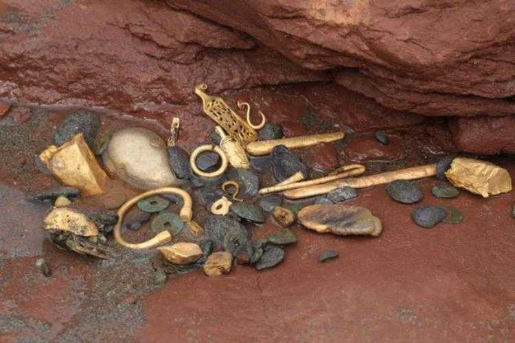 大规模的考古发掘,在2017年1月的枯水期开始。第一期考古发掘进行到3月底,发掘面积超过10000平米,深度5米,出土文物超过1万件。在3月20日的考古成果公布会上,这批财宝属于张献忠一事,终于获得官宣。根据当时发布会上透露的信息,首期发掘就出土了过万件文物,其中大量是各种金银首饰,以及少量兵器:金币银币、雕刻有花朵、鸟、龙和其他花样的精美首饰,还有展示张献忠政令的金“册”。2016年警方追回的文物中,还包括一枚黄虎形状的硕大金印。