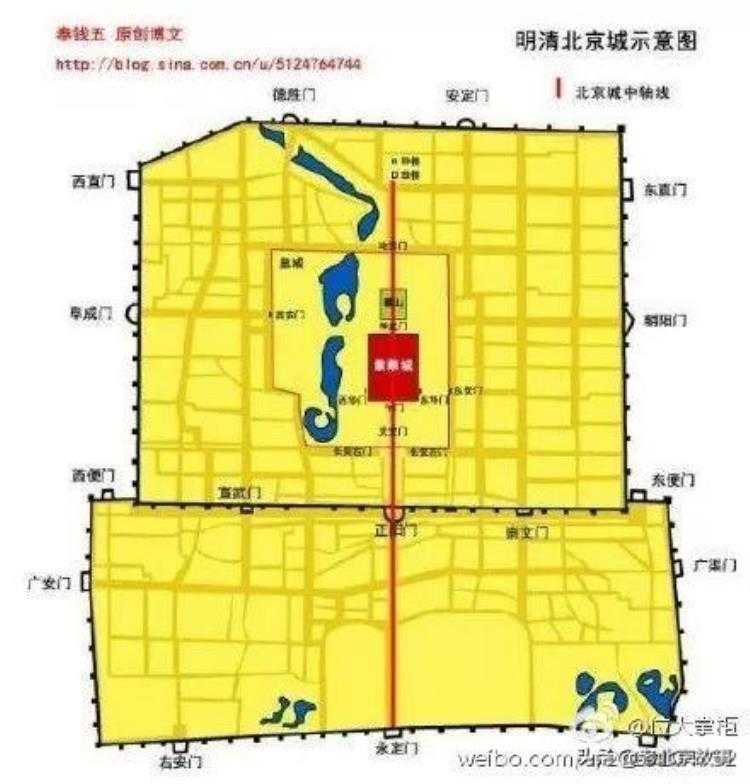 二、明朝修建北京城时,积水潭比如今面积更大水更深,如果要修成直角的话会非常不便,于是按照地形折向西南,形成了现在看到的缺角。