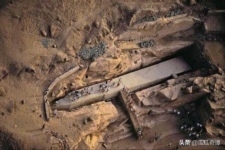 上图所示的是一座方尖碑,是直接在巨大的岩体上雕刻出来的。人们发现它的时候似乎发现石碑上存在裂缝,证明这是一座失败的雕塑。也许这座石碑就此停工了,但是它的大小您可以从图中直观的判断出来,这在古埃及是一项多么巨大的工程,而且是在巨型的山体上直接雕刻出来,简直不可思议。