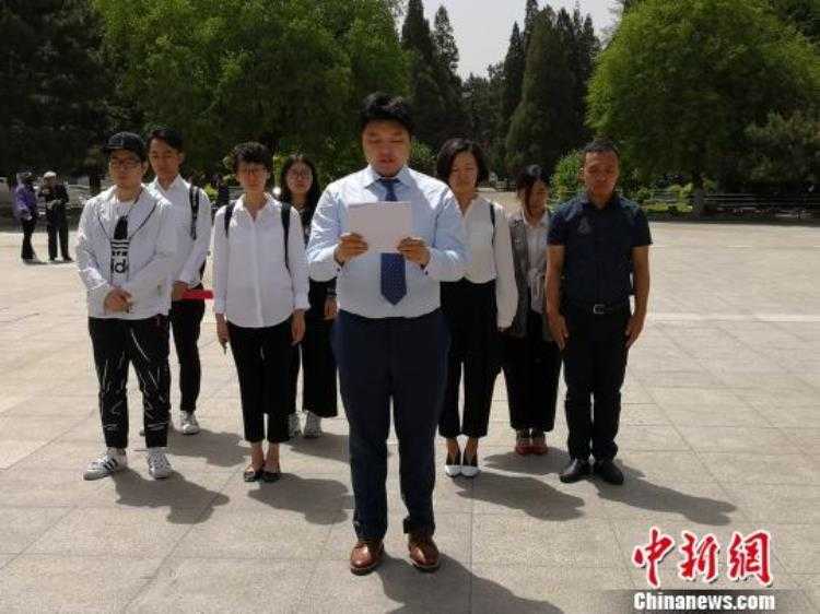 “暴走漫画”CEO任剑带领团队在董存瑞烈士纪念碑前读道歉信。 张桂芹 摄