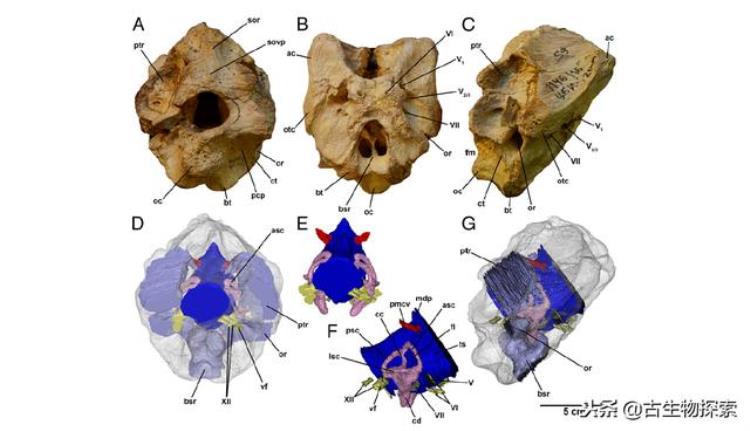 图注:对帖木儿龙内耳骨的CT扫描,图片来自论文