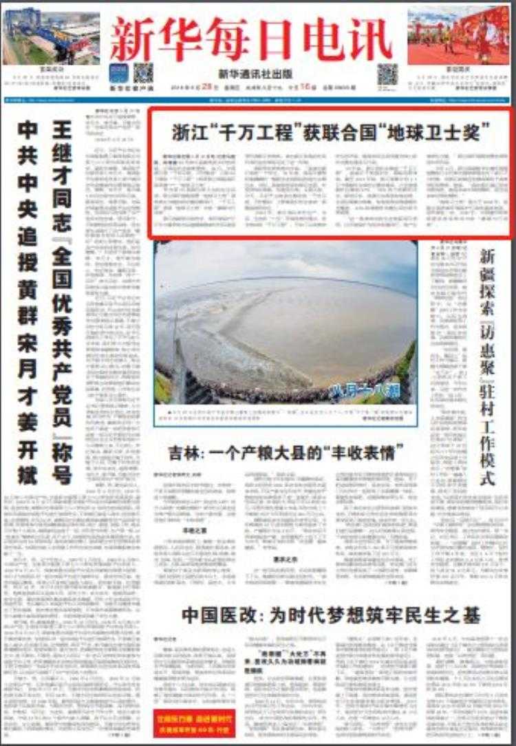 2018年9月26日,中国浙江省“千村示范、万村整治”工程,在纽约曼哈顿问鼎联合国环境规划署“地球卫士奖”。这是联合国在环保领域授予的最高荣誉。
