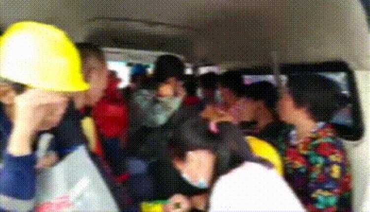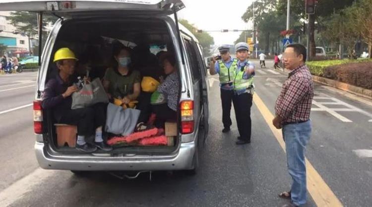 一辆“严重超载”的载客面包车