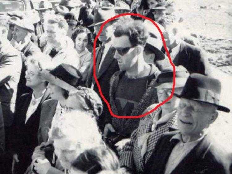 在一张1941年不列颠哥伦比亚省金桥南叉桥重新开放时拍摄的照片中,可以看到一个所谓的时间旅行者。据说他的衣服和太阳镜都很时髦,不像20世纪40年代的风格。这名男子手里拿着的相机,在那个时代看起来也很不现代、很先进。随着这张照片最近在网上疯传,这名男子现在经常被称为“穿越潮人”。