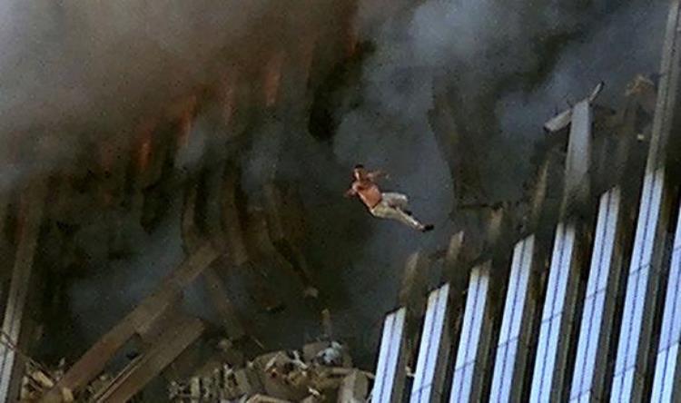在这张图片中,一个女人站在被炸毁的南塔的边缘,因为它在9/11恐怖袭击中被一架飞机击中。这名妇女挥舞着手臂,可能还在呼救,很明显她在最初的袭击中幸存了下来,但尚不清楚她是如何做到的,以及之后发生了什么。