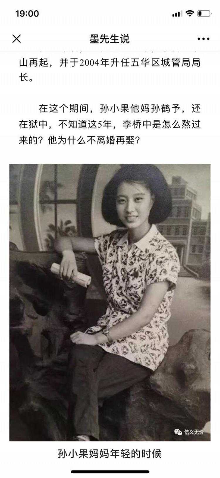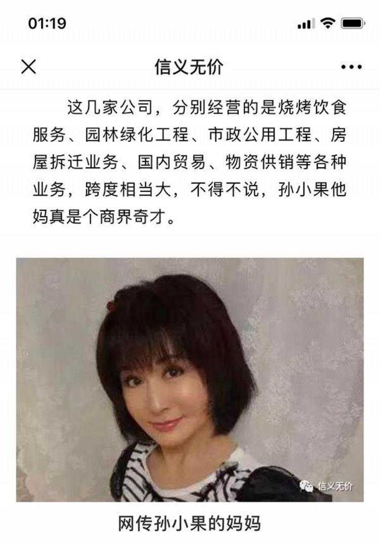 《孙小果他妈的照片首度曝光:70岁了还是美女,是个真正的厉害人物》是微信公众号“信义无价”5月29日晚发布的一篇文章的标题,称“首度曝光”孙小果母亲的照片。