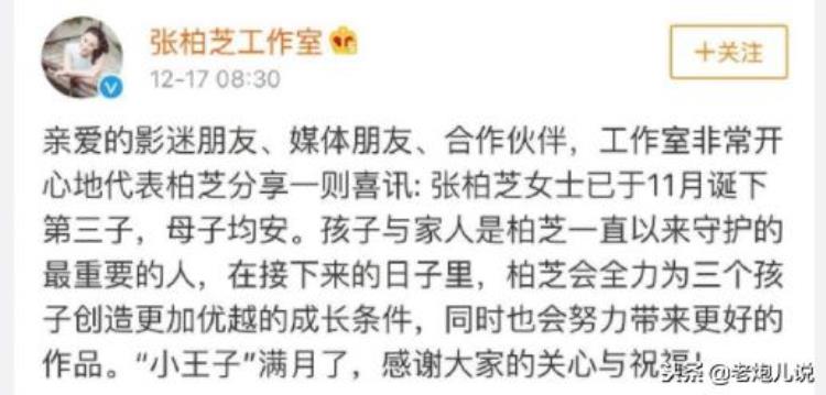 相信大家今天都已经被张柏芝发文,确认第三胎产下男婴的新闻刷屏了!而并未公布孩子的生父,只是简单的表示,接下来会全力照顾三个孩子,继续做个好母亲。于是网友在祝福之余,最关注的则是疑问孩子的父亲到底是谁?