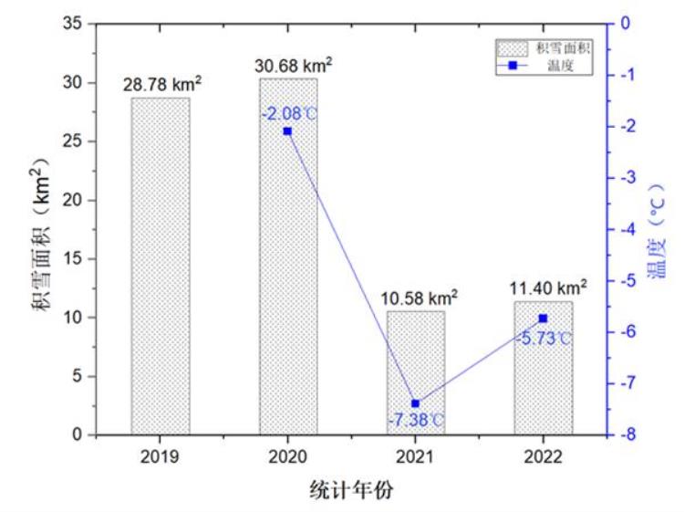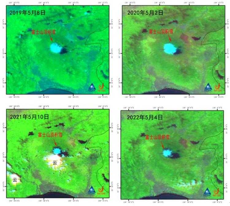 通过获取了2019年至2022年——4年的卫星图像,研究了日本富士山的积雪情况(同期时段),发现日本富士山周围显示大面积晴空地表,地表有植被覆盖,山顶可见一定范围积雪覆盖,估算约11.4平方公里。