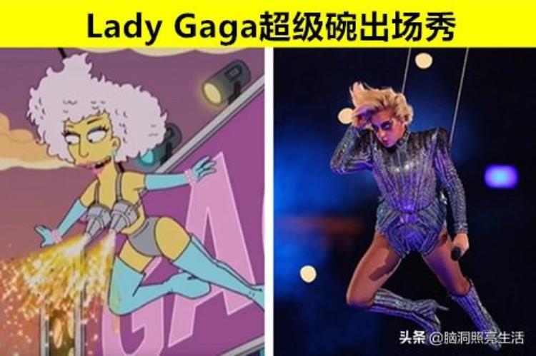 在2017年美国超级碗的中场时间,顶级歌手Lady Gaga作为表演嘉宾,她的出场非常惊艳,在空中吊着威亚,飞过自己的歌迷,看到这一幕,如果你是一位辛普森动漫作品的拥趸,应该能够在联想到,在2012年一集《 Lisa Goes Gaga》中,这位前卫的艺术家在斯普林菲尔德的一场音乐会上,穿着太空时代的服装飞过她的歌迷,和后来5年的Lady Gaga出场秀,几乎没有任何的区别。