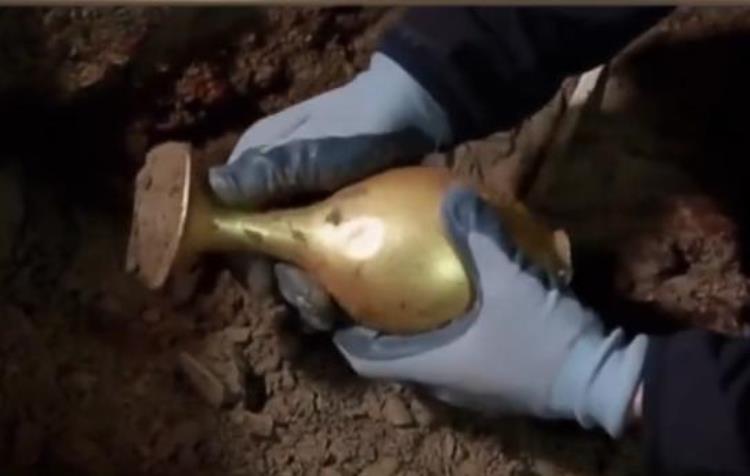 一个个造型精美的金器出现在了队员们的眼前,虽然被泥土掩埋了大半,但还是挡不住这些金器散发出的光芒。