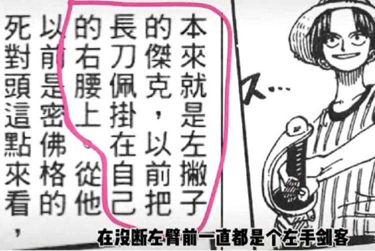 可你只知其一却不知其二,其实红发在断手之前一直都是左手剑客,人称“左手哥”,那个时候,在剑术上红发能够跟鹰眼匹敌,所谓打遍天下无敌手也不为过,可不巧的是,为了救路飞红发断的还正好就是左手。