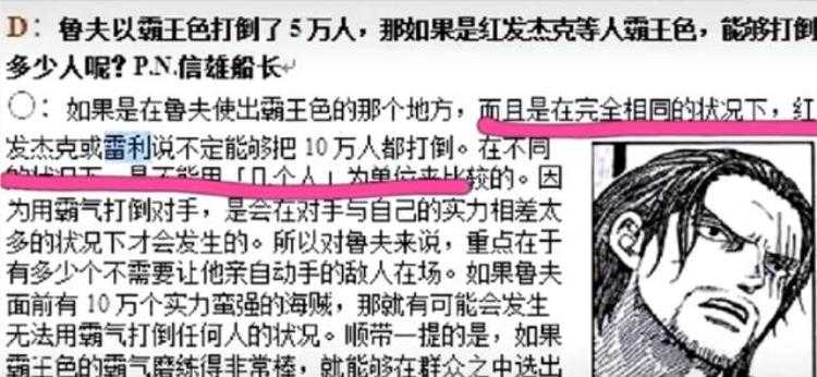 NO.3【霸王色霸气逆天】鱼人岛的时候,路飞霸气丛生,一招霸王色霸气直接秒杀了鱼人岛众位渣渣五万余人,可那个时候尾田却对大家说道,如果这个时候红发出手的话,可能在座的十万人都已经凉了!
