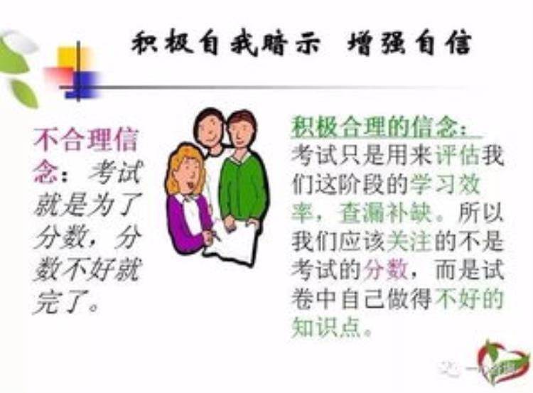 不合理的信念就是个体内心中不现实的、不合逻辑的、站不住脚的信念。大致有这三类:绝对化的要求(应该、必须)是指个体以自己的意愿为出发点,认为某一事物必定会发生或不会发生的信念。这种特征通常是与“必须”和“应该”这类词联系在一起,如“我必须获得成功”;“别人必须友好地对待我”等等。我们知道,这种绝对化的要求是不可能实现的,因为客观事物的发展有其自身规律,不可能依个人意志而转移。“我必须获得成功”事前鼓励自己是可以的,但你真要自己做到就跟自己过不去了,人不可能在每一件事上都获得成功; 还有你又不是人民币,为什么要求人人都喜欢你! 所以,当你周围的人和事物的表现和发展不依你的意愿来改变时,也是可以的,你接受了这些才不会陷入情绪困扰之中。