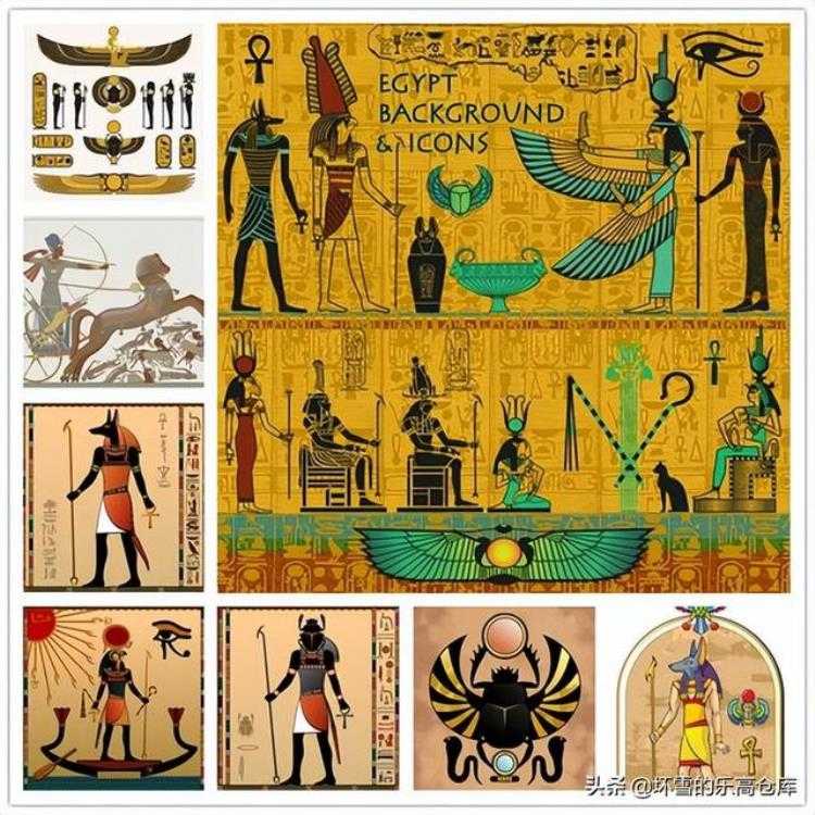 仔细辨认可以认出有埃及神话人物透特、奥西里斯和阿努比斯。另外一提这个踮起一只脚的造型拼的还是有点萌的。