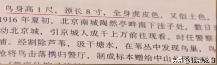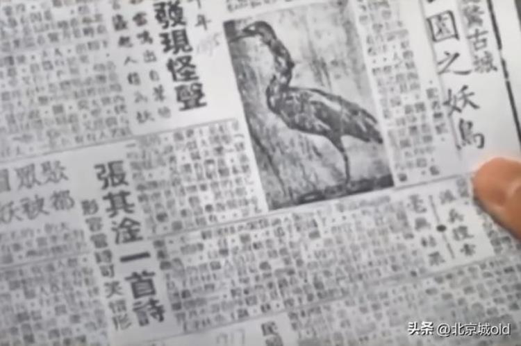 还有一个叫‘大水骆驼’它也有可能是妖鸟的标本,在民国时期的一份报道中,写了两点,陶然亭水鬼的关键要素,一个是声如雷鸣,有人说是蛟龙,有人说是鼍,第二个是妖怪再来,原来是鸟儿作祟,这两点都跟之前找到的资料是一致的,而最令人兴奋的是该报纸上,还配了一张图,图上主角儿正是‘大老妖’的标本。