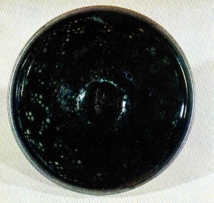 器内曜变斑密布,外壁肥厚的釉面上也见若隐若离的尤如夜空星辰的斑点。