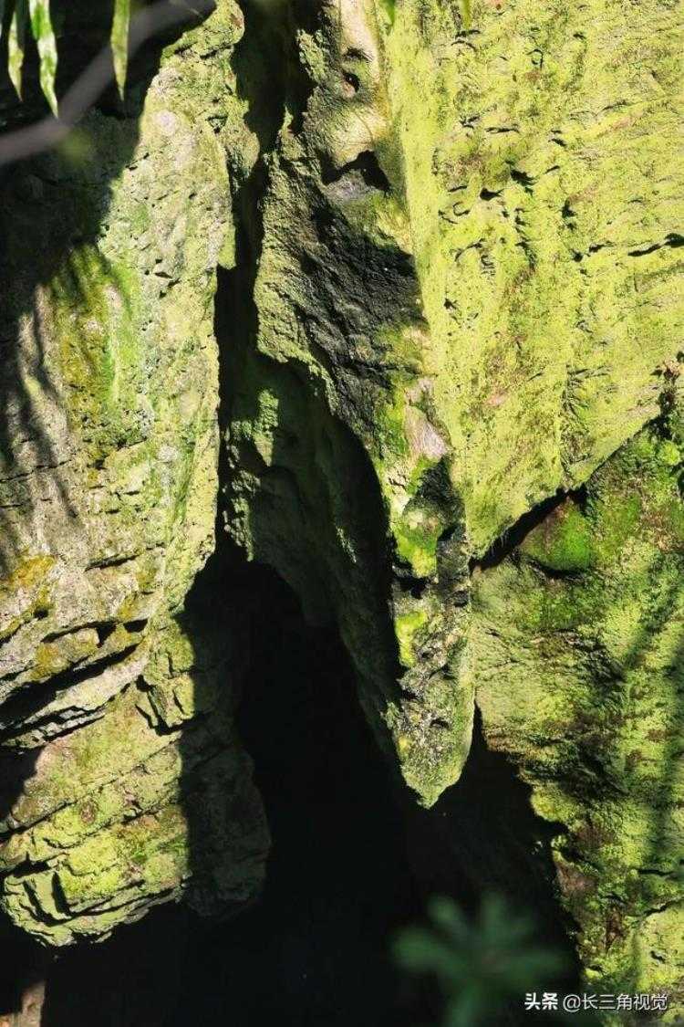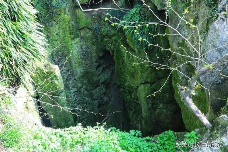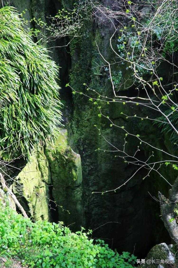 我抵达时时值正午时分,阳光透过稀疏的树叶撒进洞口,明暗交错,空谷幽深,石壁上长满了青苔,愈发显得神秘。