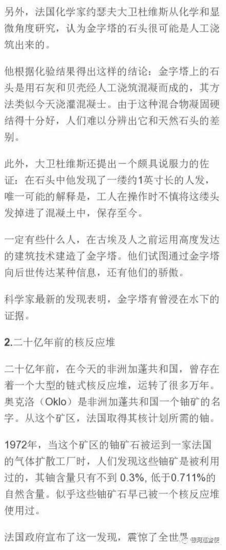 他根据化验结果得出这样的结论:金字塔上的石头是用石灰和贝壳经人工浇筑混凝而成的,