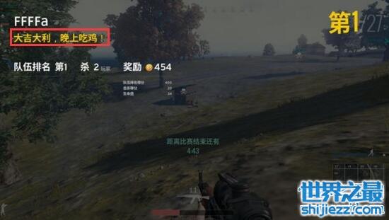 这是因为,在玩绝地求生的时候,拿到了第一名就会在屏幕的左上角出现一句:“大吉大利,晚上吃鸡”。于是久而久之玩家们就用吃鸡来说这个游戏了,所以吃鸡是什么游戏指的就是绝地求生大逃杀。