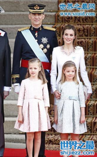 2014年在费利佩成为西班牙国王的时候,一家四口同时亮相的画面简直太美好,莱昂诺尔和妹妹索菲亚分别身穿同款不同色的圆领连衣裙,感觉姐姐比妹妹还美一些,可能因为小索菲亚还没长开。