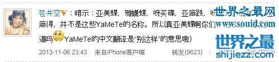 雅蠛蝶是什么意思,苍井空微博科普遭中国网友调戏