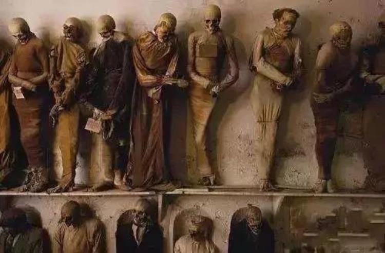 在巴勒莫,19世纪的男性尸体僵硬地列队而立。将近2000名死者就安歇在这里,或挂在墙上,或摆在椅子上,或躺在陈旧的棺木里。有些神父对这种 保存尸体寄托哀思的方式心怀不安,把其中一些从地下墓穴里运出掩埋到墓地里。没人知道埋了多少,也没人知道这种干尸究竟有多少具。这让人不免疑惑:为什么 会有人这么做?把腐化的尸体拿来展览用意何在?