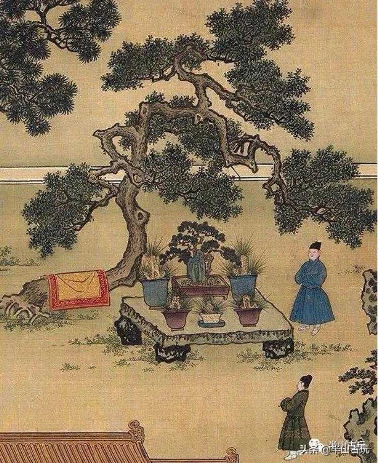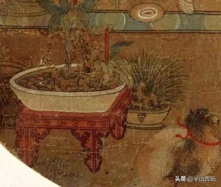 台北故宫博物院所藏的明《十八学士图》(局部),我们也可以发现官钧窑的花盆和鼓钉洗,也是用作种菖蒲之用。