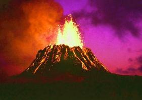 火山爆发带来周期性和毁灭性破坏,凡岩浆流经之处,森林焚毁,房屋倒塌,交通断绝,据说当火山爆发时,熔岩不仅从火山口,也从岩层缝中溢出,橘红色的熔岩巨流,温度高达2000摄氏度,就像一条伏卧而行的火龙,象十分壮观。