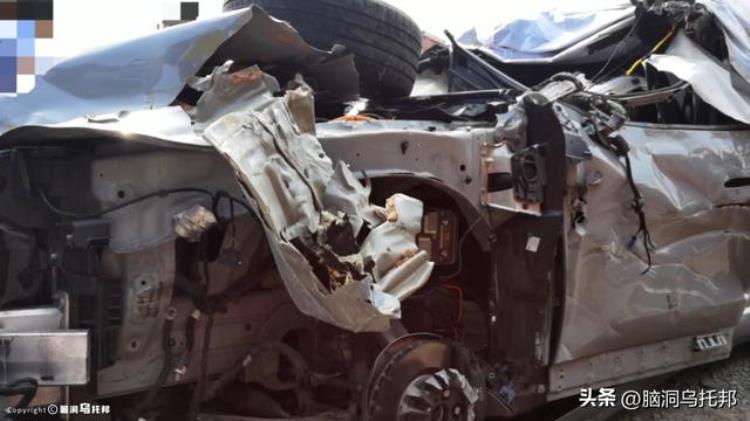 车头已经完全撞烂,引擎盖被折断。
