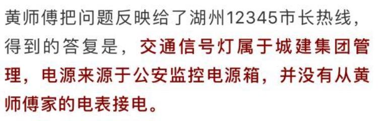 龙泉派出所的民警则回复说,治安监控的线路确实连到了黄师傅家里,具体原因,因为时间比较长了,还得再去了解。现在红绿灯用的都是LED灯,用电量不高,一个月的费用大概几十块钱,湖州市城建投资集团有限公司表示会承担这部分电费。目前,民警已经联系了黄师傅,协商退费的事情。