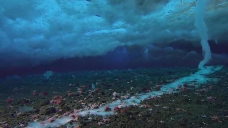 不仅如此,英国摄影队在南极发现了非正常现象,在他们的拍摄下,我们看到了难以想象的一幕,在南极的冰层之下,有一个“未知生物”在游动,但很明显看上去并不是生物,更像是软软的冰柱。