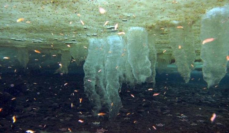 最不可思议的是这种冰柱,就像我们在影视中所看到的画面一样,在它游动的同时,所经过的位置全部都被冻结,向海底的其他位置扩散,很明显冰层下的生物被冻住后无法动弹,最终导致死亡,目前科学家无法解释这种现象,只能通过推测的形势来解读。