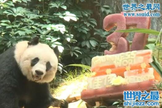 据英国《镜报》7月28日报道,近日,大熊猫佳佳迎来了它37岁生日。为庆祝其生日,香港海洋公园的饲养员还特地为它准备了一块用竹子和蔬菜制成的冰蛋糕。据悉,佳佳出生于1978年,自1999年起一直生活在香港海洋公园。佳佳是世界最老的大熊猫和世界上现存的最老大熊猫寿命两项吉尼斯世界纪录的保持者。