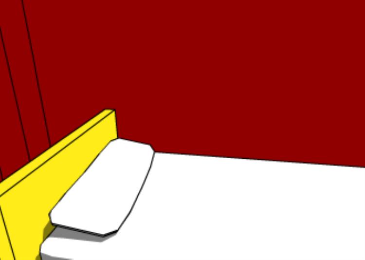 房间的整体呈现接近于2.5D,加上高度饱和的色彩风格,整个房间给人的第一印象就是感官不适。