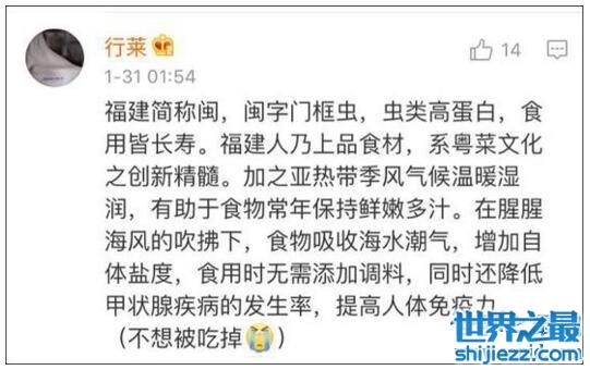 不得不说,从一个梗到衍生出如此“有理有据”的说法,真的是完全意想不到啊。让人听了不免会想一下,福建人真的这么好吃吗?求问正确的吃福建人方法等。能把一个梗玩到这样的地步,我大天朝的创新能力真的是日新月异啊。