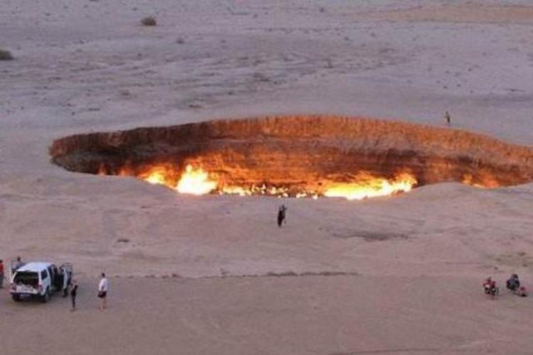 在上个世纪七十年代的时候,土库曼斯坦还只是前苏联的一部分,1971年,一批苏联地质学家来到此寻找油田,但在探测过程中,他们并没有发现油田,而是意外的发现了大面积的天然气,但是工作人员在钻探过程中却出现了意外,地面突然出现了坍塌,地上的人和设备都掉落到了地底,此次坍塌也是该地形成一个直径70米,深度大约30米的大坑。