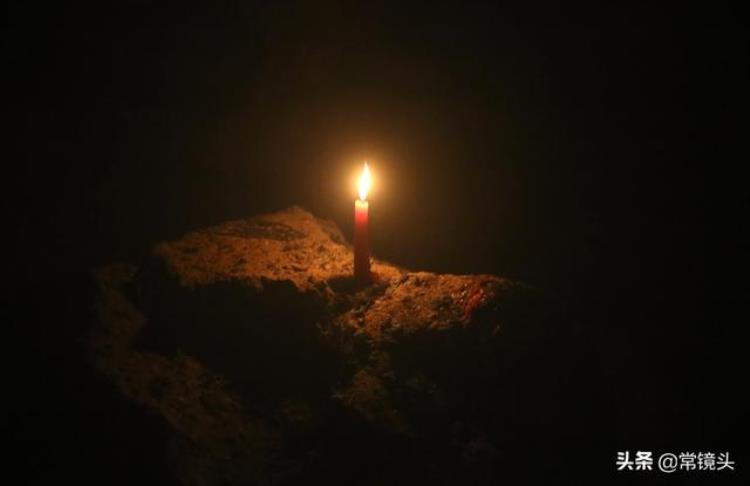 走进洞内之后,唯一能够看到光亮的地方,就是附近村民为了方便烧香、祈福点燃的蜡烛。